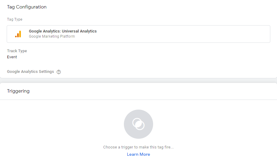 Once you have the necessary information, return to the tags configuration screen. If you already have a tag labeled and prepared to be triggered, simply connect it to the appropriate trigger through this user-friendly interface: