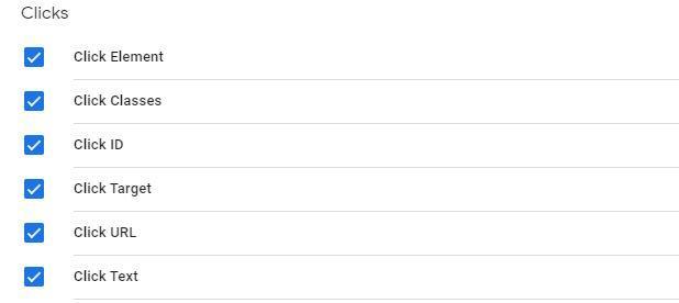 Figure 5: By default, these variables are not validated, so you will need to manually check them if you want to track clicks on your webpage. For future convenience, we have selected all of these variables.